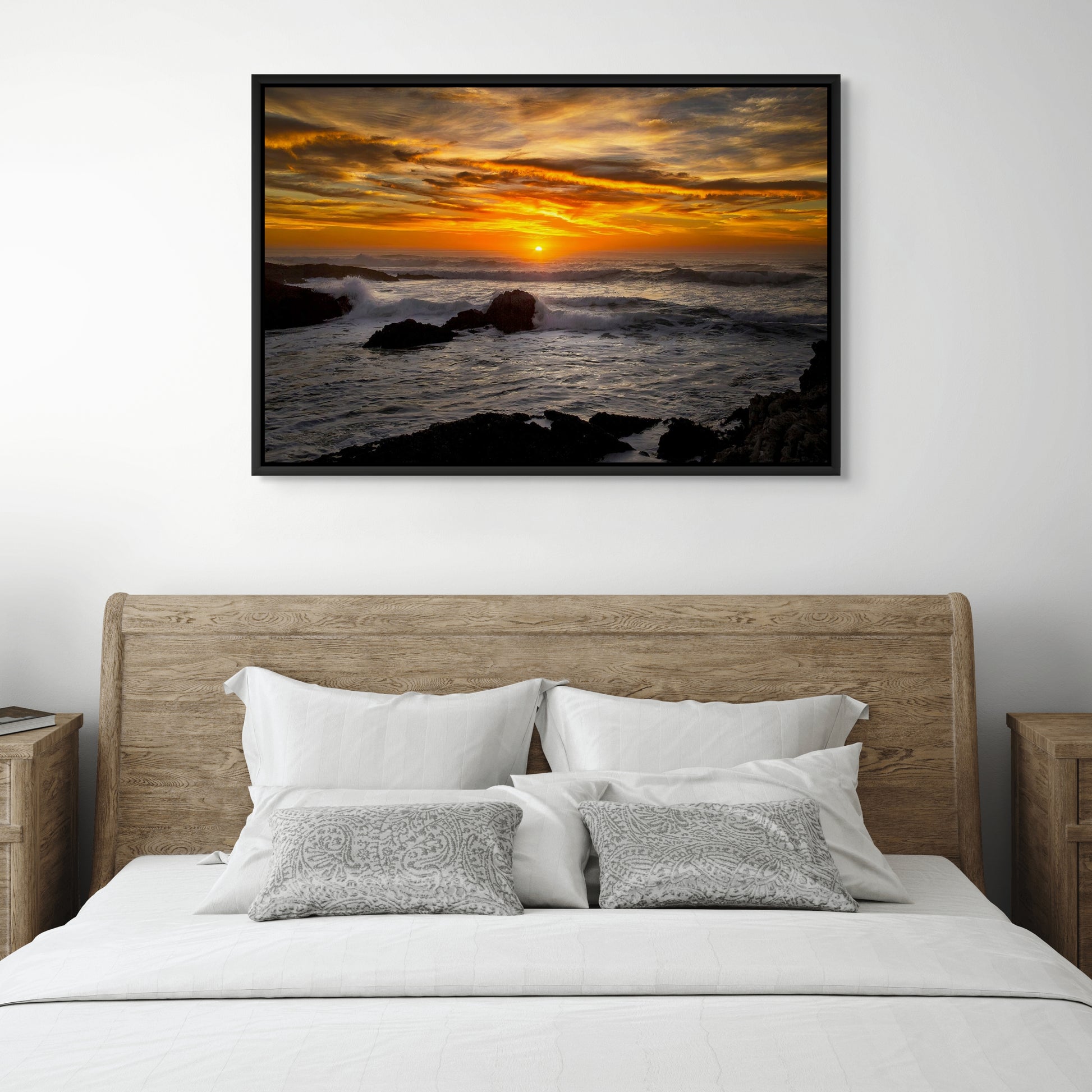 A Rocky Coast at Dusk - Framed Canvas