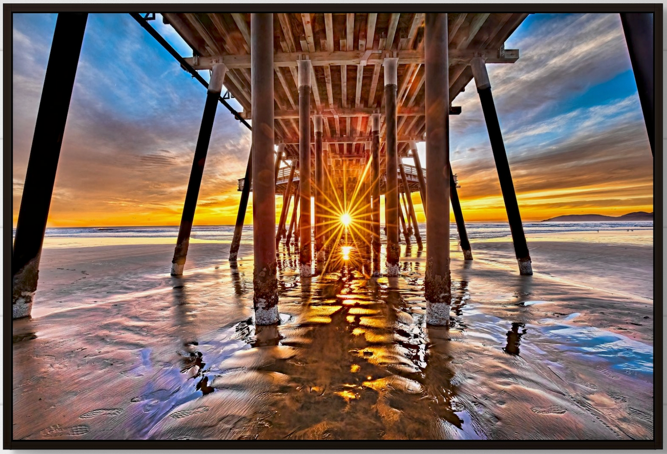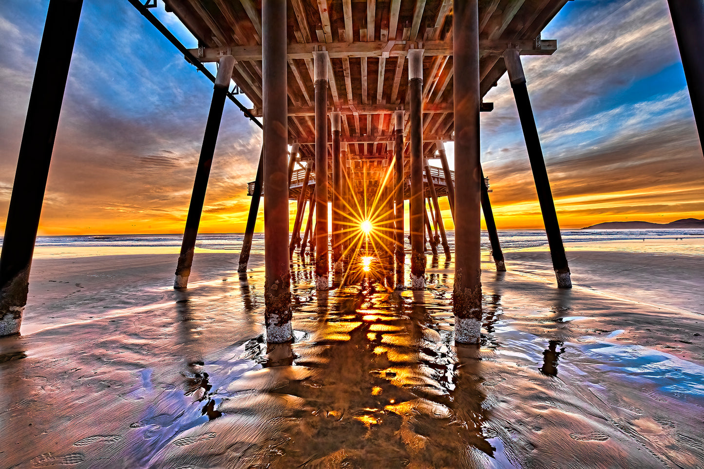 Twice a year the sun sets right at the end of the Pismo Pier, in Pismo Beach, CA.. In 2018 the pier renovation was complete and the structure of the pilings now allows the sun to be seen right down the middle, underneath the pier. This is a sight to be seen!